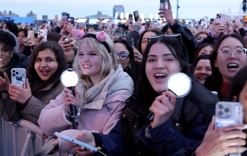 Meanwhile, Jungkook shouted, “What a beautiful ARMY!” as he thanked fans for enduring the chilly waterfront weather, while V added that hearing US Army cheers again after so long felt deeply moving.